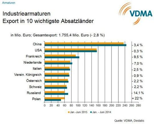 Armaturen im Aufwind: Dank der Markterholung in Asien und den USA können sich die Hersteller von Absperrhähnen, Ventilen und Regelarmaturen über ein solides Umsatzplus von 4 % im ersten Halbjahr 2017 freuen.