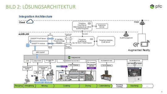 Zur besseren Veranschaulichung bedienen wir uns eines Beispiels aus dem Bereich der Elektromobilität, denn auch das Elektromobilitätslabor (Elab) an der RWTH Aachen musste sich genau dieser Herausforderung stellen. Das Labor bietet eine offene Infrastruktur zur Erforschung der Elektromobilität. Von der Technologieentwicklung über das Testen bis hin zum fertigen Prototypen können Unternehmen profitieren. Im Elab beginnt die Batterieproduktion auch als kontinuierlicher Prozess, der später in einen diskreten Prozess übergeht. Entlang der Wertschöpfungskette werden Maschinen verschiedenster Hersteller verwendet, die über verschiedenste Anbindungsmöglichkeiten an Informationstechnologie verfügen.