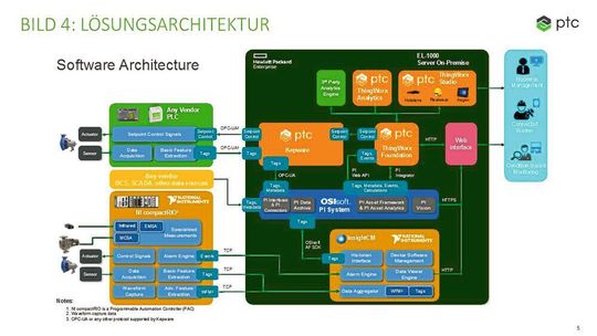 Die Lösung lag in der Expertise verschiedener Industriepartner, in diesem Fall aus dem Bereich der Sensorik und der schnellen Datenerfassung und Speicherung, kombiniert mit einer industriellen Innovationsplattform zur Aggregation und Visualisierung der Daten. Damit kann Flowserve nun die Daten seiner Pumpen aufnehmen und mit Machine Learning-Algorithmen und historischen Daten Vorhersagen zur Lebensdauer eingesetzter Komponenten machen. Hierbei wird dem Edge Computing eine große Bedeutung beigemessen, da die Daten bereits an der Anlage analysiert und entsprechende Information verteilt werden kann, ohne die Daten zunächst in ein zentrales, cloudbasiertes System zu senden.