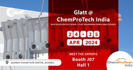 Schüttgutpartikel-Design und Anlagenbau aus einer Hand. Glatt zur ChemProTech Indien in Mumbai – 24. bis 25. April in Halle 1 am Stand J07