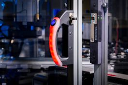 Eine neue Lösung für diese Art von Schutzeinrichtungen ist das Türgriffsystem DHS: Es kombiniert die Funktionen eines robusten Türgriffes mit der Anzeige verschiedener Maschinenzustände über die Beleuchtung des Griffs. Der Griff signalisiert unterschiedliche Maschinenzustände großflächig über sieben verschiedene Farben. Der Anwender kann die Farben individuell ansteuern, um die jeweils definierten Maschinenzustände zu signalisieren. Das Türgriffsystem kann zusammen mit den Sicherheitszuhaltungen AZM40 und AZM300 oder als Stand-alone-Lösung eingesetzt werden.