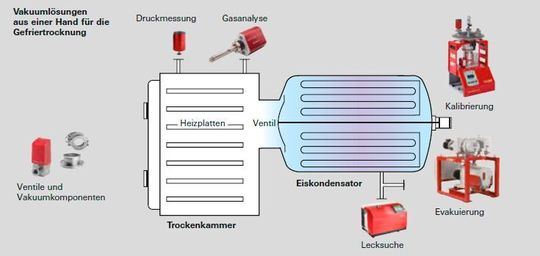 Für die Gefriertrocknung von Pharmaprodukten sind zuverlässige Vakuumkomponenten erforderlich – nicht nur Pumpen, sondern z.B. auch Messtechnik und Lecksucher. Vorteilhaft ist es, diese Komponenten aus einer Hand zu beziehen.