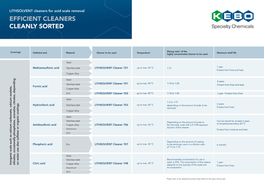 KEBO LITHSOLVENT Reinigungskonzentrate. Speziell für die saure Reinigung hat KEBO die LITHSOLVENT Reiniger entwickelt. Dabei handelt es sich um gebrauchsfertige Mischungen aus Säure und Inhibitor, die für einen Temperaturbereich von Raumtemperatur bis 80 °C bestens geeignet sind.