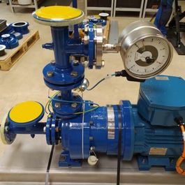 Die mobile Kreiselpumpen-Ausführung bietet die Vorzüge aus dem Hause CP von magnetgekuppelten Chemieprozesspumpen in Verbindung mit Überwachung und Steuerung. Erhältlich sind diese Einheiten mit vielfältigen Optionen für Anschlüsse, Rohrleitungen, Überwachungen (Spalttopf-Temperaturfühler, Liquiphant, Manometer usw.) und Materialien.